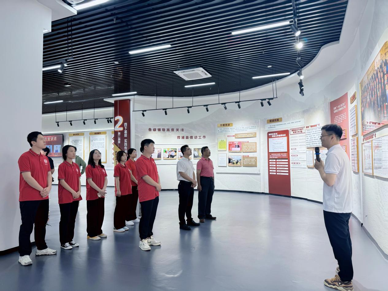 “作为‘四下基层’发源地的霞浦县,是关于加强和改进人民信访工作的重要思想的萌发地、孕育地和实践地……”在共青团霞浦县委书记谢良焰的陪同下,实践队走进“把心贴近人民·四下基层发源地”主题展,开展沉浸式、体验式学习,通过一张张珍贵的照片、一件件历史物件,追溯霞浦的足迹往事,感悟其中的领袖思想伟力。随后,在“时代楷模”孙丽美同志先进事迹展示馆内,孙丽美同志十七年如一日扎根农村,为脱贫攻坚、乡村振兴默默付出的先进事迹,深深打动了在场的每一位实践队成员,更加坚定了大家以青春之力勇担时代重任的信念与决心。