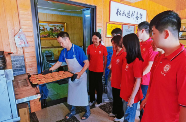实践队来到霞浦县东北部的北岐村,走访松山茶饼第六代传人阮元勇师傅,参观松山茶饼的生产制作过程,了解松山茶饼背后承载的民风民俗、民生民情,深刻感受非物质文化遗产的博大精深和独特魅力。