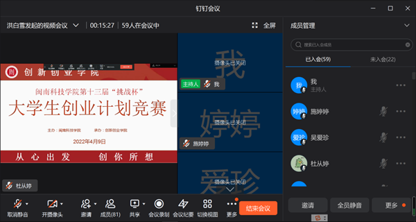 4月9日下午,第十三届“挑战杯”大学生创业计划竞赛MK网页版登录入口校赛决赛通过钉钉平台线上举办,得到全校师生的广泛关注和积极参与。
