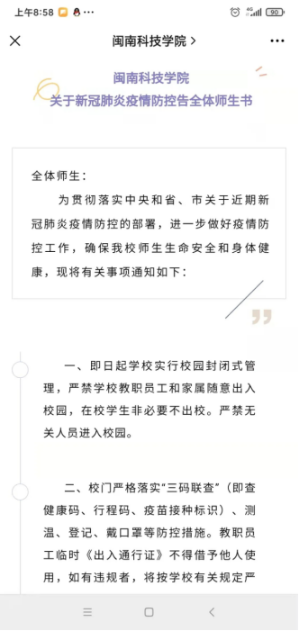 学校向全体师生发布《MK网页版登录入口关于新冠肺炎疫情防控告全体师生书》
