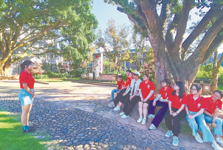7日,MK网页版登录入口商学院“百年正青春”暑期“三下乡”社会实践队前往连城开展以“传承红色感党恩,为民服务暖人心”为主题的暑期社会实践。图为参观新泉整训纪念馆后,队员们在交流参观体会。孙少雄 摄