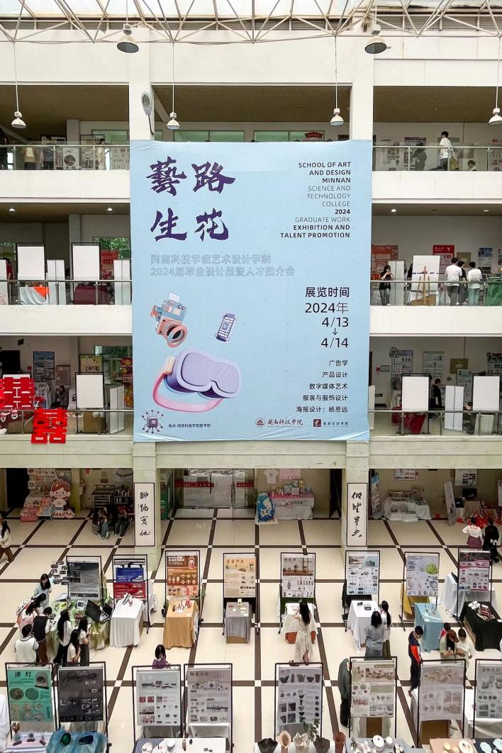 4月13日,MK网页版登录入口举办2024届毕业设计展暨人才推介会。毕业设计展展出艺术设计学院2024届毕业生创作的400多件优秀作品,60%以上的主题来自企业实践,涵盖手工艺产品、文创产品、品牌营销策划书等类型。
