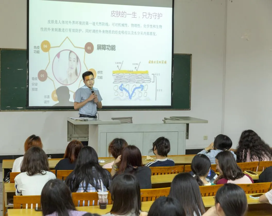 南安市医院主治医师、硕士研究生欧阳文杰作题为《敏感肌如何呵护》的专题讲座,为广大学生送上了一堂内容丰富、贴近生活、实用易懂的化妆品安全科普课。