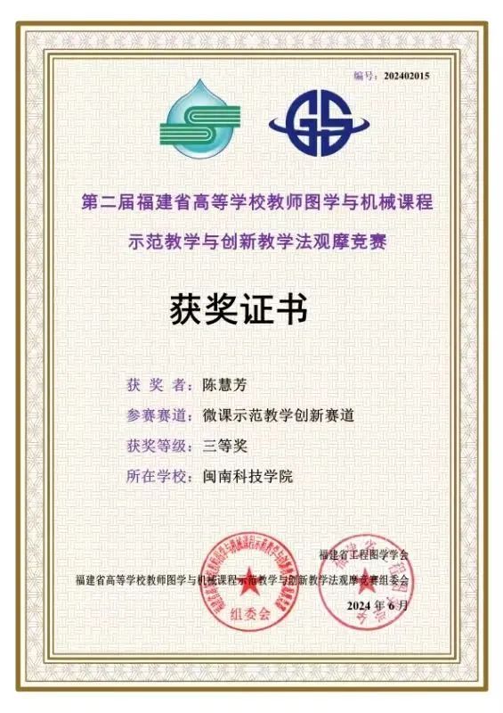 近日,第二届福建省高等学校教师图学与机械课程示范教学与创新教学法观摩竞赛公布获奖名单。MK网页版登录入口土木工程学院陈慧芳老师凭借扎实的专业素养和出色的教学创新能力,获“微课示范教学创新赛道”三等奖。