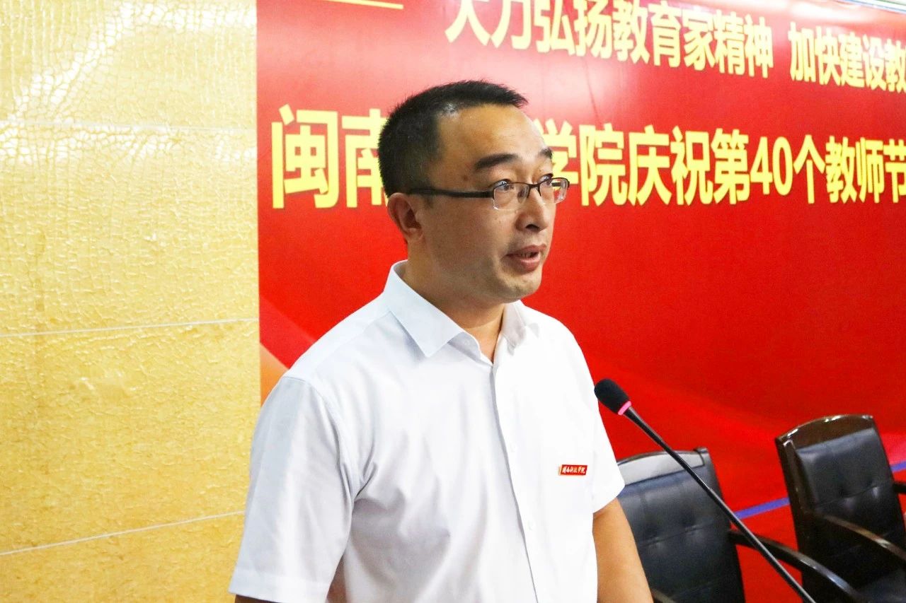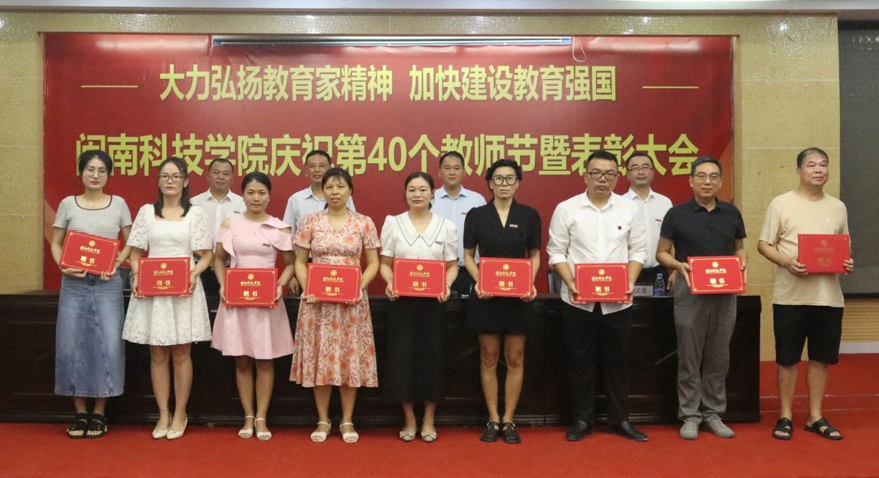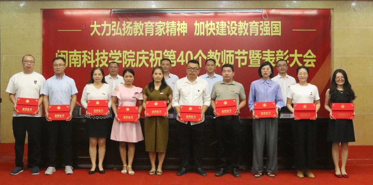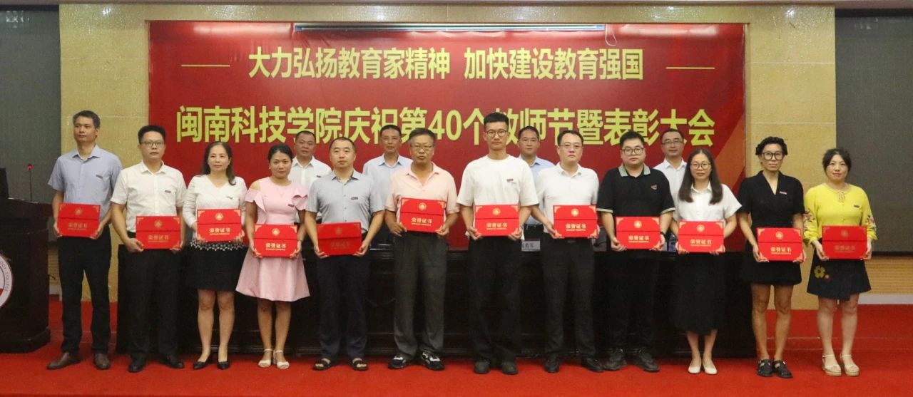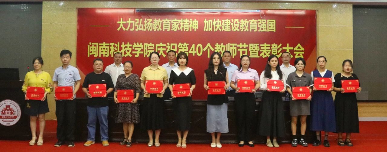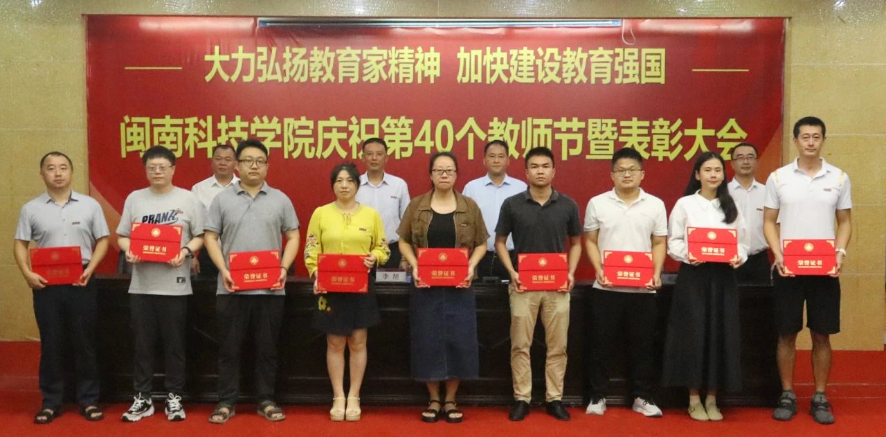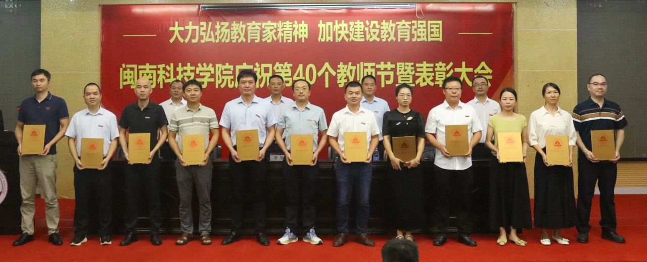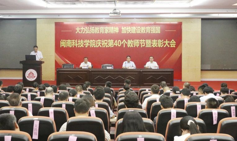 9月11日下午,MK网页版登录入口隆重举行庆祝第40个教师节暨表彰大会。大会深入学习贯彻党的二十届三中全会精神和全国教育大会精神,表彰过去一学年在教育教学、科研服务、指导学生竞赛等工作中取得优异成绩、作出突出贡献的教师,举行“青蓝结对”导师聘任仪式。校领导李旭、周勇军、林树生,校长助理刘武强出席表彰大会。