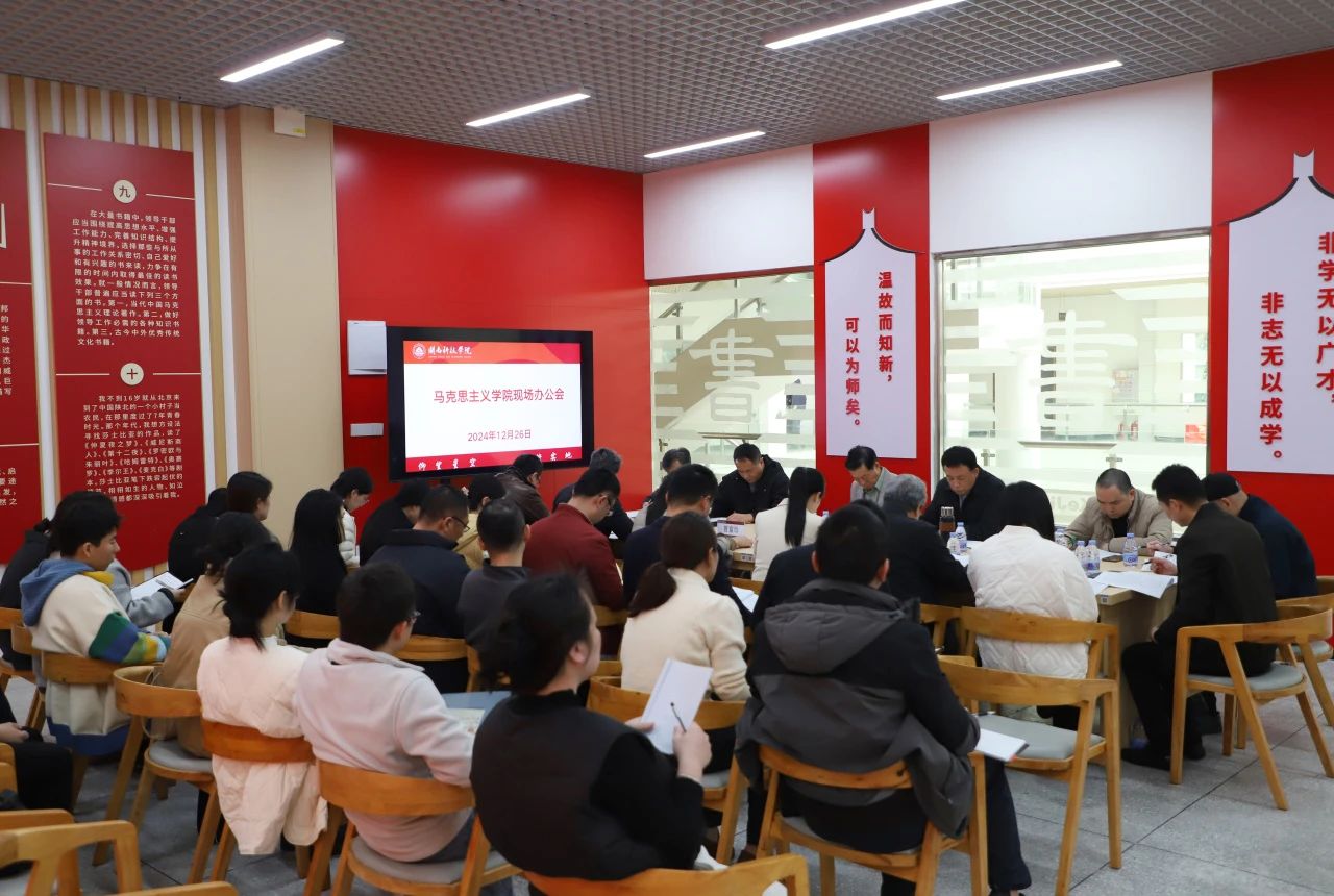 12月26日下午,MK网页版登录入口召开马克思主义学院现场办公会。校领导袁自煌、李旭、周勇军,相关职能部门负责人,马克思主义学院全体教师参加会议。会议由校党委书记李旭主持。