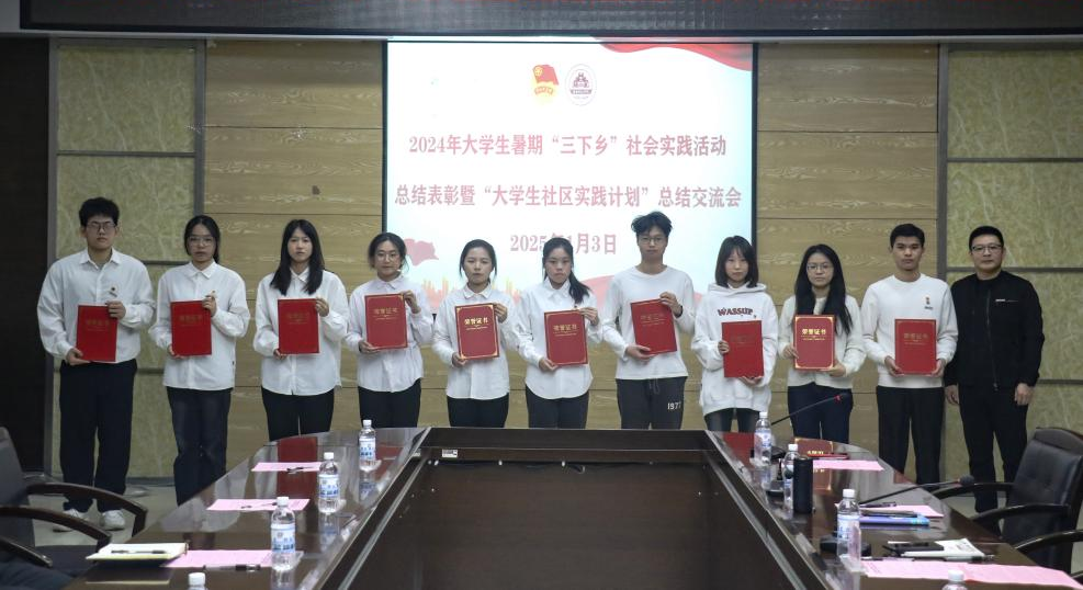 会议总结2024年度学校共青团实践育人工作情况,对2024年大学生暑期“三下乡”社会实践活动优秀团队、先进工作者、先进个人及“大学生社区实践计划”优秀团支部进行表彰。