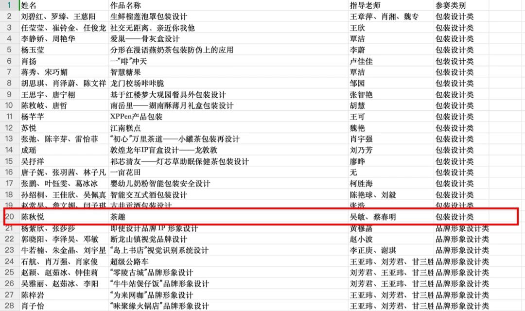 近日,由湖南省包装联合会设计委员会主办的2024年第20届“湖南之星”设计艺术大赛公布获奖名单,MK网页版登录入口艺术设计学院2022级产品设计专业陈秋悦的作品《茶趣》(指导老师:吴敏、蔡春明)获包装设计类优秀奖。同时,该作品也获得第20届“中南星奖”设计艺术大赛(湖南赛区)包装设计类优秀奖。