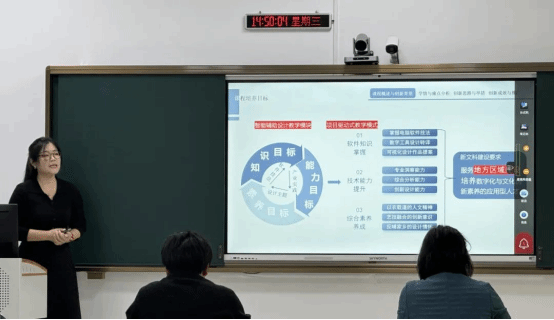 在评审点评环节,评审专家结合教学内容创新、教学方法创新、课程思政融入等方面进行现场提问和打分,并提出下一步提升改进的意见建议。