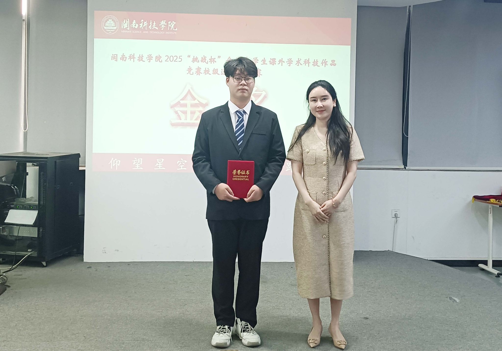 岳瀚槭副校长为获得金奖的团队颁奖