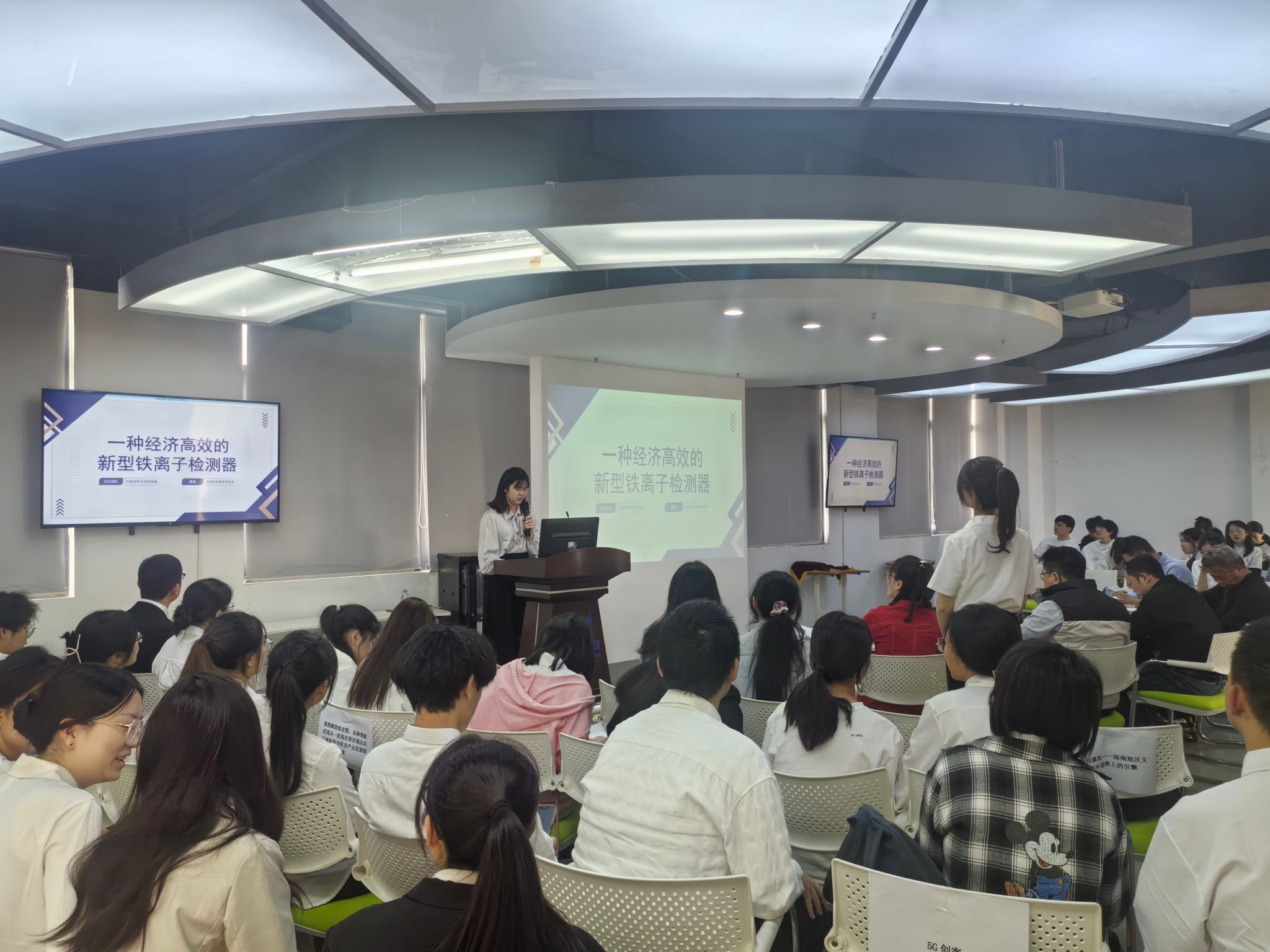 经过激烈的比拼,最终评选出金奖1项、银奖2项,铜奖5项、优秀奖7项,其中,《一种经济高效的新型铁离子检测器》(项目成员:郭炎辉、朱家仪、黄志炜、廖榕、李为冰,指导老师:唐恩、戴玉梅、郭震宁)获得校赛金奖。