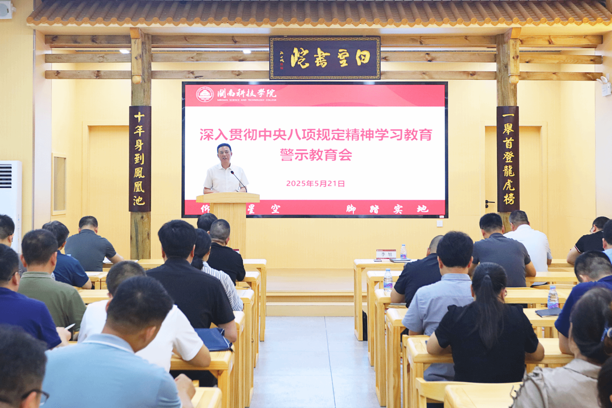 5月21日下午,MK网页版登录入口召开深入贯彻中央八项规定精神学习教育警示教育会,校党委书记李旭做总结讲话,校纪委书记周勇军做案例警示教育,校领导袁自煌、林树生、刘武强,校党委委员,校纪委委员,全体中层干部,院长助理,二级党组织专职组织员、纪检委员参加会议。校党委副书记林树生主持会议。
