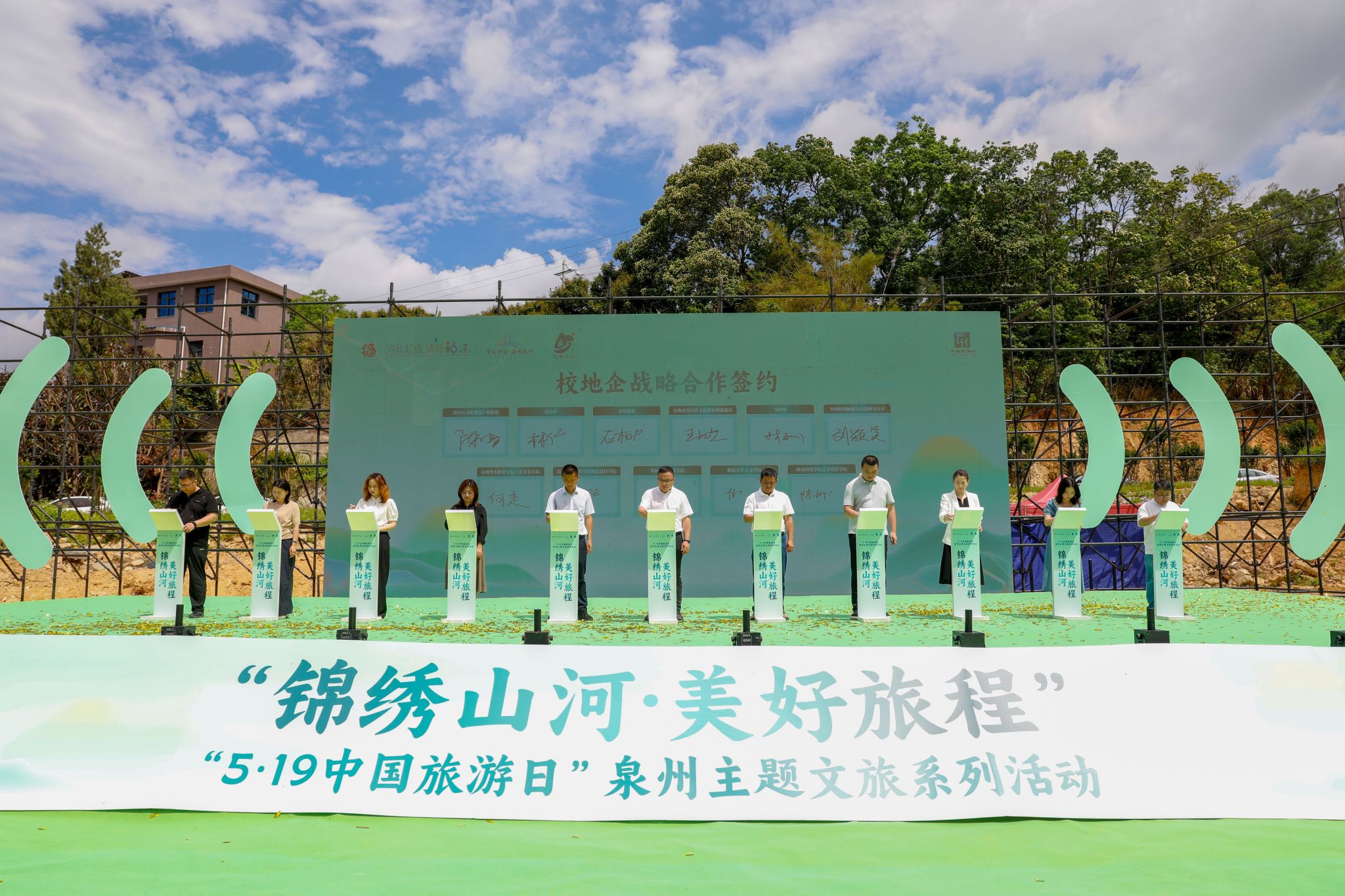 作为“锦绣山河·美好旅程——5·19中国旅游日”泉州主题文旅系列活动亮点之一,洛江区文化创意产业联盟以“创意洛江·时尚旅游”为主题,致力于搭建“政产学研用”协同创新平台,推动“文旅+科技”跨界融合与“非遗+数字化”创新发展。活动现场为联盟成员单位颁发牌匾,为创意指导专家颁发聘书,进行联盟校地企战略合作签约。现场还发布“仙山洛水”文创IP及系列周边产品,启动首届 "移起 AI" 洛江文创设计大赛等。