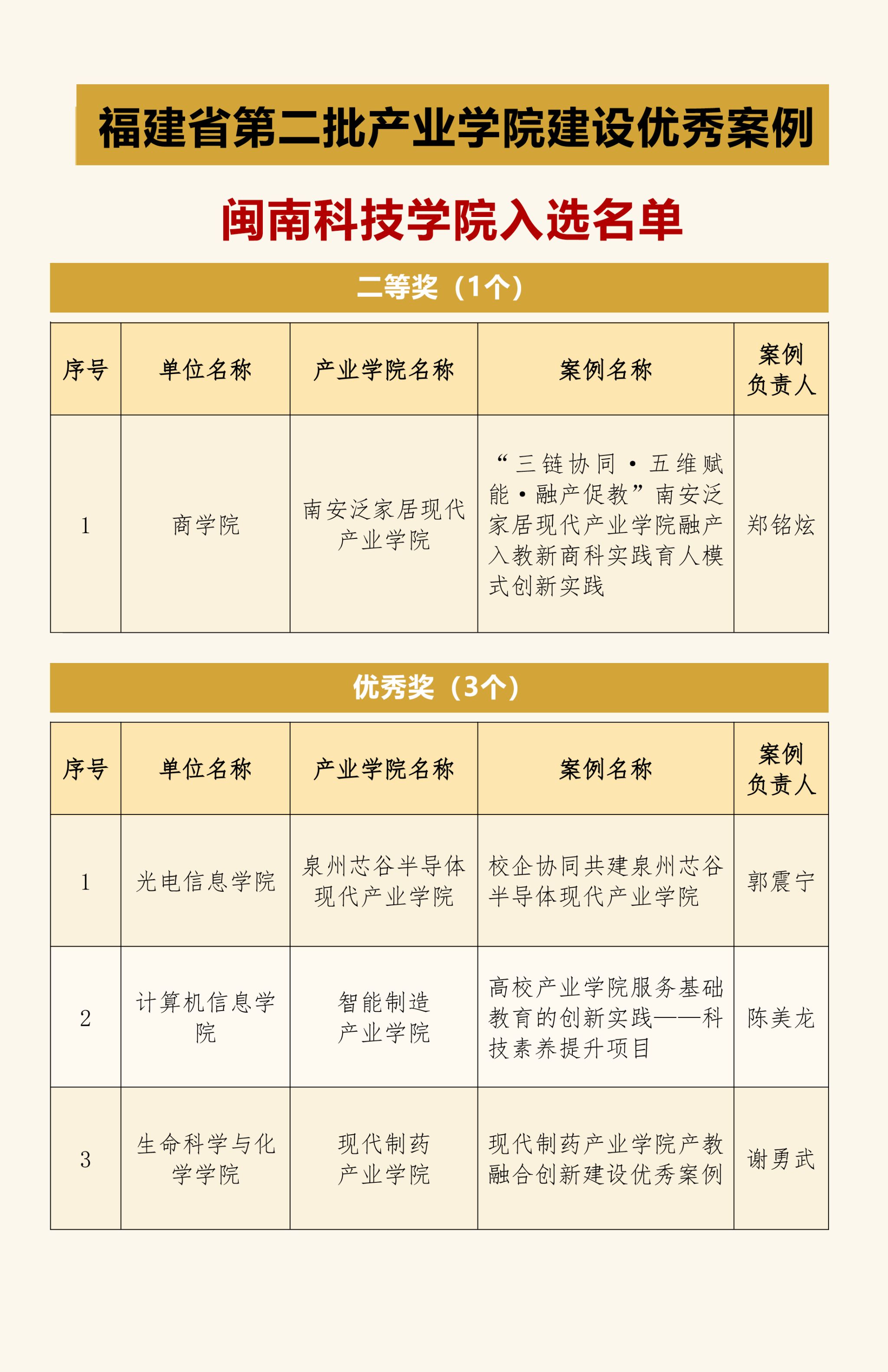 近日,福建省高校产业学院发展联盟公布第二批产业学院建设优秀案例入选名单,MK网页版登录入口4项案例成功入选,获得二等奖1项、优秀奖3项。