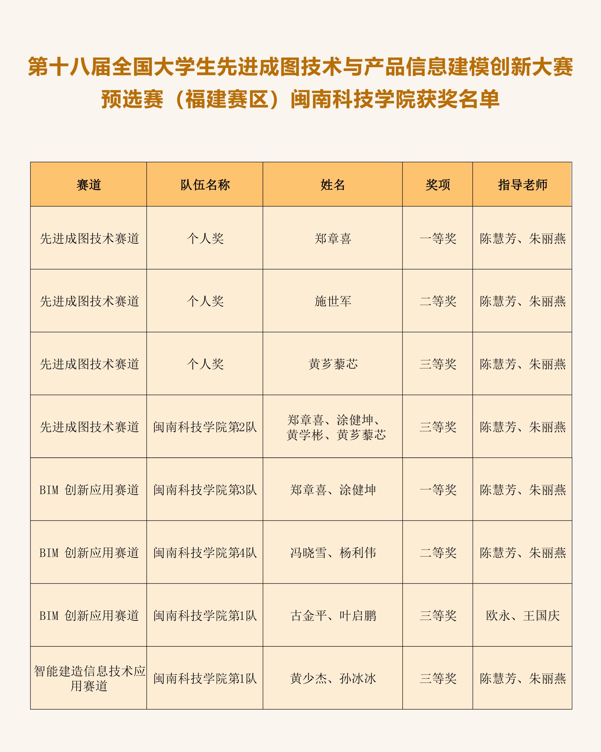 近日,由福建省教育厅、全国大学生先进成图技术与产品信息建模创新大赛组委会、福建省大学生先进成图技术与产品信息建模创新大赛组委会主办的第十八届全国大学生先进成图技术与产品信息建模创新大赛预选赛(福建赛区)公布获奖名单,MK网页版登录入口土木工程学院参赛队伍分别获得一等奖2项、二等奖2项、三等奖4项的好成绩。