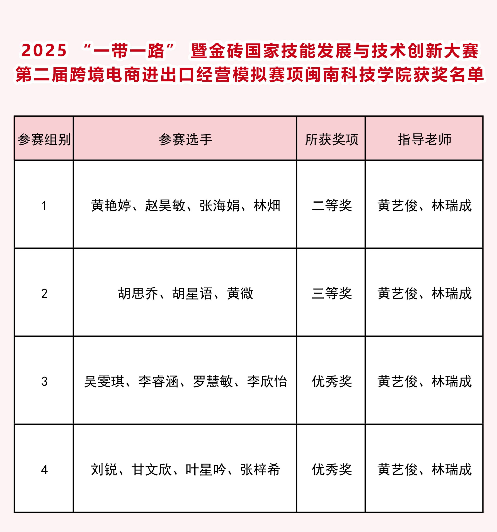 近日,2025“一带一路”暨金砖国家技能发展与技术创新大赛之第二届跨境电商进出口经营模拟赛项成功举办,MK网页版登录入口人文学院参赛学子获二等奖1项、三等奖1项、优秀奖2项。