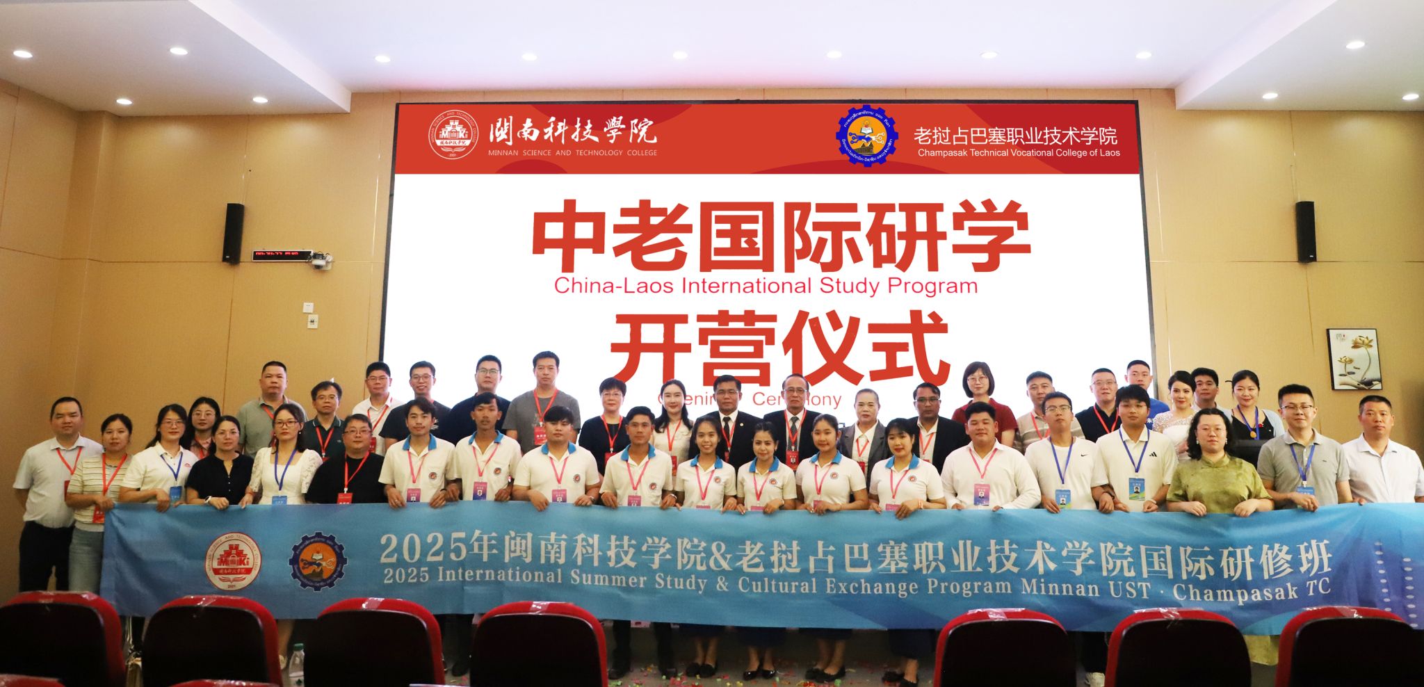 7月28日,MK网页版登录入口与老挝占巴塞职业技术学院国际研学营开营仪式在MK网页版登录入口盛大启幕。老挝占巴塞职业技术学院院长坎鹏·拉萨翁沙、老挝占巴塞职业技术学院原院长兼校务顾问莫凯·苏帕翁,南安市人民政府办公室四级主任科员、外事科科长苏君娜,南安市公安局出入境管理大队副大队长许金山、南安市第三小学负责人吕敦盛、南安市创石科创服务有限公司项目经理林琛贵、中老职业教育发展共同体副秘书长张艺、MK网页版登录入口副校长岳瀚槭出席开营仪式,与来自老挝占巴塞职业技术学院13名师生共同开启“知华・习技・融文”文化之旅。