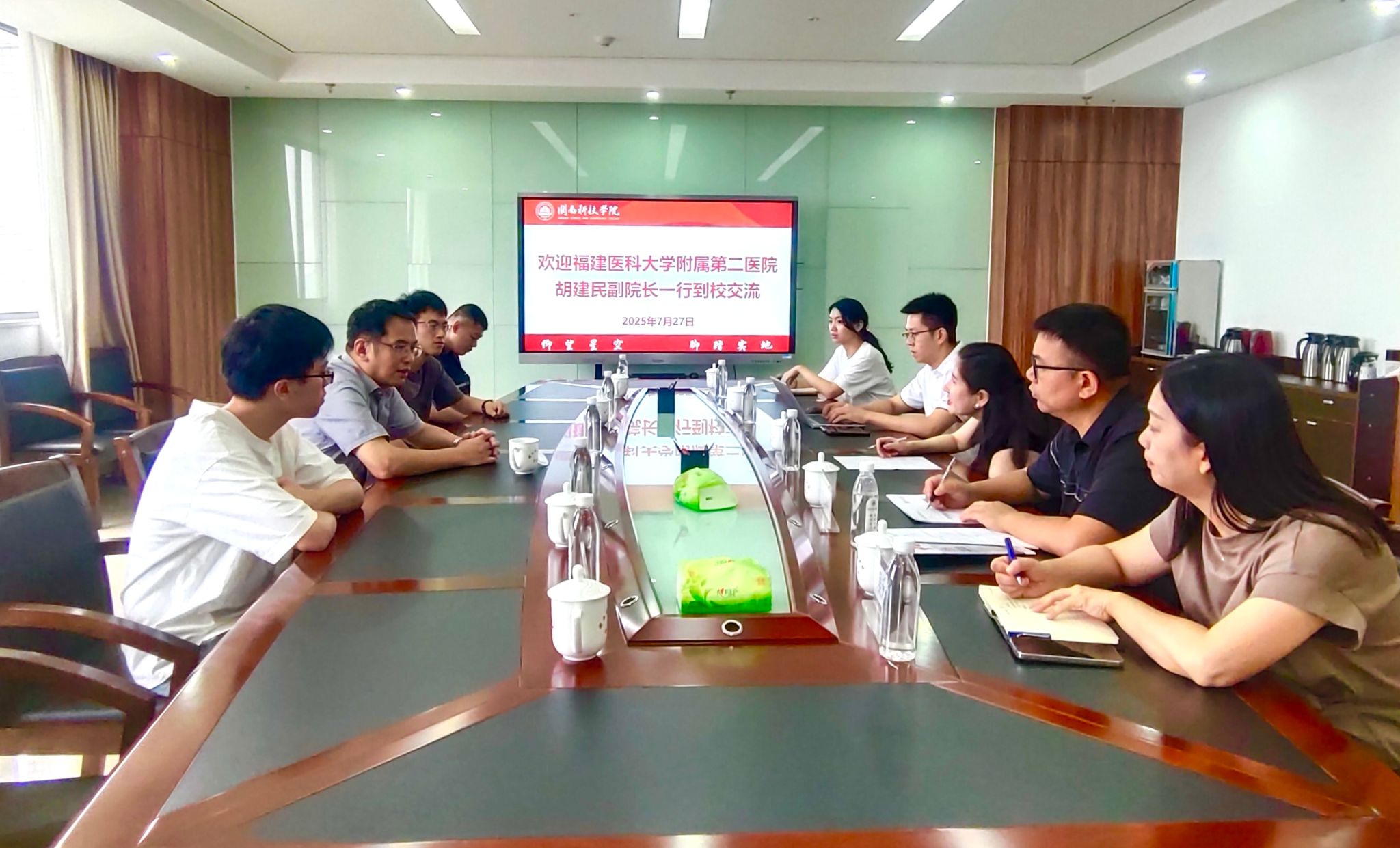7月27日,福建医科大学附属第二医院副院长、福建省儿童青少年近视防控研究中心主任、视障辅助技术福建省高校工程研究中心主任胡建民教授带队莅临MK网页版登录入口开展调研交流,副校长岳瀚槭出席座谈会,光电信息学院、科研处有关负责同志参加活动。