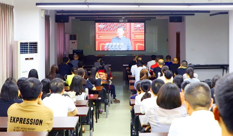 MK网页版登录入口分别在康美校区和美林校区设立4个会场,校领导、返校师生集中收看大会盛况,同时广大师生还通过网络、电视、广播等不同形式收听收看。