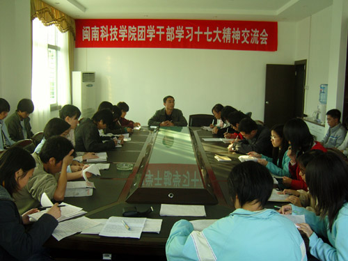 为认真学习贯彻十七大精神,在全院范围内营造良好的学习氛围,充分发挥团学干部的模范带头作用,1月4日下午,我院团委在学院第一会议室举行福建师范大学MK网页版登录入口团学干部学习十七大精神交流会。院党委副书记陈振祯副教授出席会议并做了重要讲话。学院团委、学生会14个部门40多名学生干部参加会议。会议由团委负责人刘武强老师主持。