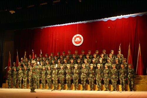 在学生活动中心,我院举办了“唱响军歌,聚焦神七”2008级新生歌咏比赛,我们用自己的歌声来庆贺“神七”升空。《中国人民解放军军歌》、《团结就是力量》、《军中绿花》、《纪律歌》等一首首军歌,不仅唱出了当代大学生的青春活力,同时也表达他们心中对党和国家的热爱之情。