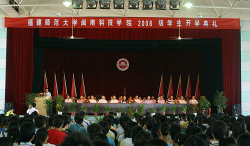 9月16号上午,我院在学生活动中心隆重召开2008级迎新大会。福建师范大学党委副书记、福建师范大学MK网页版登录入口党委书记郭绍生、福建师范大学副校长汪文顶,南安市委副书记曾焕楷、学院董事长戴宏达先生及其他董事会成员出席了本次大会。参加迎新大会的还有师大、南安市政府、康美镇以及学院的有关领导和教师代表、老生代表、全体新生。迎新大会由常务副书记林国庆主持。
