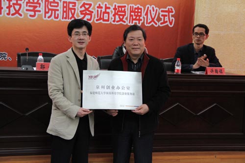 授牌仪式上,郭院长发表了热情洋溢的致辞。他说,YBC福师大MK网页版登录入口服务站的成立,标志着中国青年创业国际计划成功落户我院,这是我院学生就业创业工作的重要里程碑。我们将以此为契机,认真学习YBC的先进理念,借助YBC的网络、智力和人才优势,凝聚和调动全院各方力量,积极帮助学生创业,大力推动大学生就业再上新台阶。