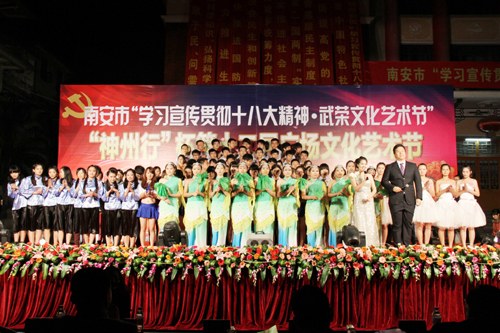 据悉,本场晚会作为南安市“神州行杯”第十二届广场文化艺术节重要组成部分,旨在学习宣传贯彻党的十八大精神,繁荣活跃南安市人民群众精神文化生活,为全市人民打造一道精美的文化盛宴。同时向全市人民充分展示我院的办学水平、办学特色和校园文化建设的丰硕成果。