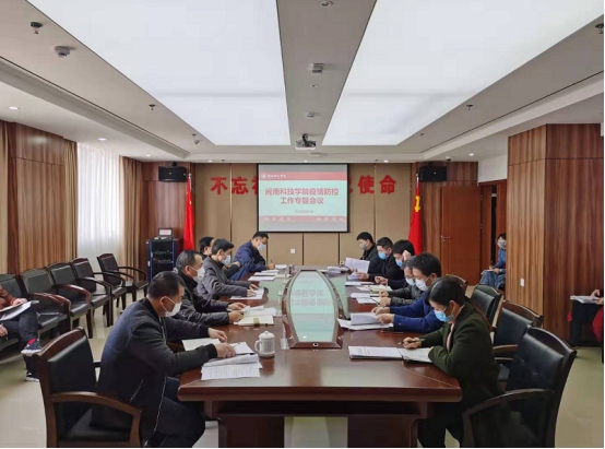 会议传达党中央国务院、省委省政府、省教育厅及地方党委政府疫情防控最新精神,听取校疫情防控工作小组的各单位工作汇报,并对学校防控工作方案进一步充实修订,研究部署下一阶段特别是开学初的防控疫情工作预案。
