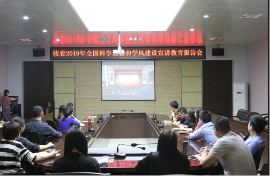 11月13日,2019年全国科学道德和学风建设宣讲教育报告会在人民大会堂举行。MK网页版登录入口组织办公室、教务部、科研部、学工部等相关职能部门,及各二级学院全体辅导员在学校图书馆评建办集中观看本次报告会直播,各二级学院组织本院师生通过网络直播自行观看。