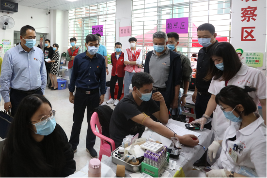 “献血后身体能适应吧?”“这是第几次献血了?”“献血活动是一场爱的传递,你们都是好样的!”校领导游小波、李旭、周勇军、吴勇来到献血现场,亲切慰问了参加无偿献血的老师和同学们,感谢师生的无私奉献,鼓励在排队的同学放松心情,叮嘱完成献血的同学注意饮食和休息。