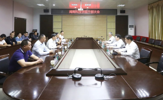 李旭同志在会上作表态发言。他表示坚决拥护省委教育工委的任命决定,感谢省委组织部、省委教育工委及学校董事会的信任。作为一名新闽科人,今后将牢固树立“四个意识”,坚定“四个自信”,做到“两个维护”,坚决贯彻执行好省委的任务要求,牢记立德树人使命,与全校师生同甘苦、共奋进,自觉加强学习增本领,提高站位强党建,凝心聚力助发展,清正廉洁守纪律,为将学校办成一所具有侨乡特色、在海峡两岸有影响力的高水平应用型本科高校而努力。