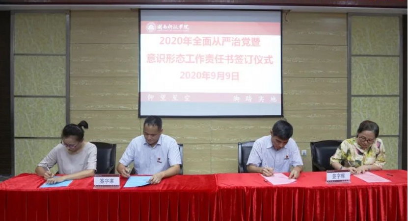 会上,校长游小波、常务副校长周勇军分别与各二级学院党政领导、党组织负责人、各单位主要负责人签订《全面从严治党主体责任书》和《意识形态和网络安全工作责任书》,全体中层干部签订《廉政承诺书》。