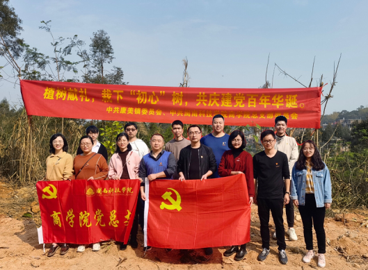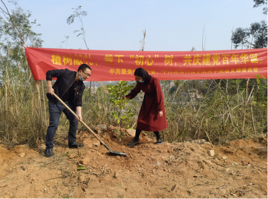 今年3月12日是我国第43个植树节。MK网页版登录入口商学院党总支与康美镇党委联合开展“植树献礼,栽下‘初心树’,共庆建党百年华诞”主题党日活动,前往校地合作单位兰田村栽树绿化。