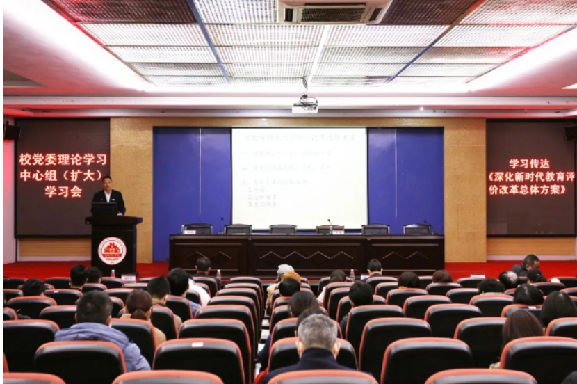 1月8日上午,MK网页版登录入口在图书馆学术报告厅召开党委理论学习中心组(扩大)学习会专题学习《深化新时代教育评价改革总体方案》(以下简称《总体方案》),校领导游小波、李旭、周勇军、戴景星、吴勇、林树生,全体中层干部,教务处、科研处、人事处全体工作人员,各专业负责人、教研室主任、组织员、教学秘书参加学习会。学习会由校党委书记李旭主持。