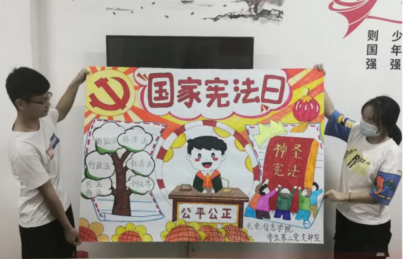 光电信息学院学生第二党支部开展“弘扬宪法精神,传播法治力量”主题系列活动,以主题班会、制作宪法宣传视频、绘制宣传海报等形式,结合生活中的法律案例、宪法题材经典影视剧,组织学习领会以《中华人民共和国宪法》为核心的中国特色社会主义法律体系,进一步凝聚法治共识,推动师生遵法守法学法用法,增强爱国意识和民主法制意识,扎实推进依法治教、依教治校进程。