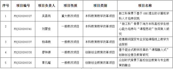 此次获批的5个项目聚焦人才培养的核心领域与关键环节,注重理论与实际相结合,具有一定的全局性、前瞻性和创新性。