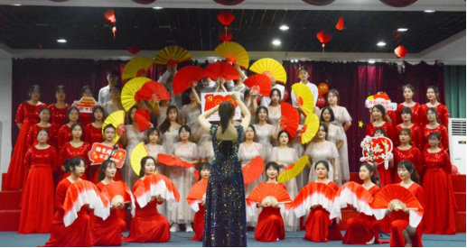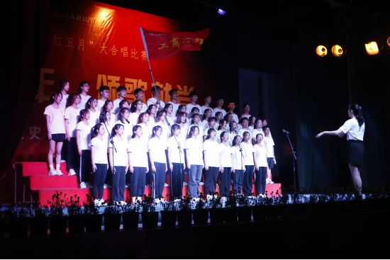 比赛现场,校大学生艺术团合唱团和18个专业合唱代表队一起用激昂的歌声和曼妙的旋律赞颂伟大的祖国和中国共产党,唱响《没有共产党就没有新中国》。