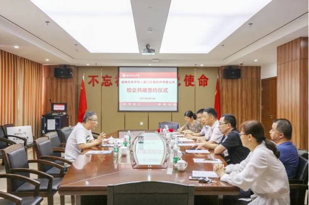 5月12日下午,MK网页版登录入口与厦门亿星软件有限公司举行校企共建签约仪式。亿星软件公司总经理连文立,学校副校长吴勇,教务处、商学院负责人及相关教师等出席签约仪式。