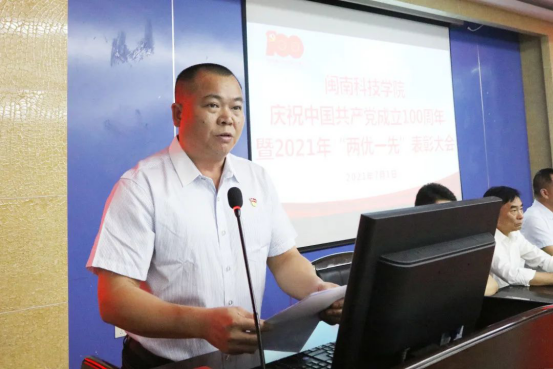 7月1日上午,MK网页版登录入口在图书馆学术报告厅隆重召开庆祝中国共产党成立100周年大会暨“两优一先”表彰大会。校领导游小波、李旭、周勇军、林树生、邱永渠,全体党委委员,“两优一先”表彰对象、各二级学院党政负责人、各职能部门负责人和党员师生代表参加大会。大会由校党委副书记林树生主持。