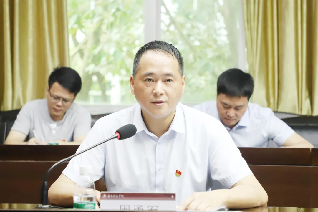 校纪委书记、常务副校长周勇军以《学党史 践行动 推动党风廉政建设行稳致远》为题作领学发言,结合自己的学习思考,从“在学百年党史中筑牢理想信念之基”“在学百年党史中汲取拼搏奋进之力”“在学百年党史中感悟为民服务之心”“在学百年党史中担当干事创业之责”等方面分享学习体会和收获。他强调,广大党员干部要立足新时代,担当新使命,严以修身、严以用权、严以律己,带头遵守党规党纪,带头树立良好风气,做到讲党性、重品行、作表率,保持清正廉洁政治本色,在党史学习中悟思想、办实事、开新局,把党风廉政建设贯穿于学校改革发展全过程,把蕴藏在红色历史中的精神力量转化为干好实际工作、推动各项事业发展进步的不竭动力。