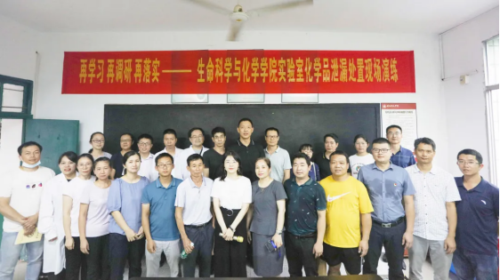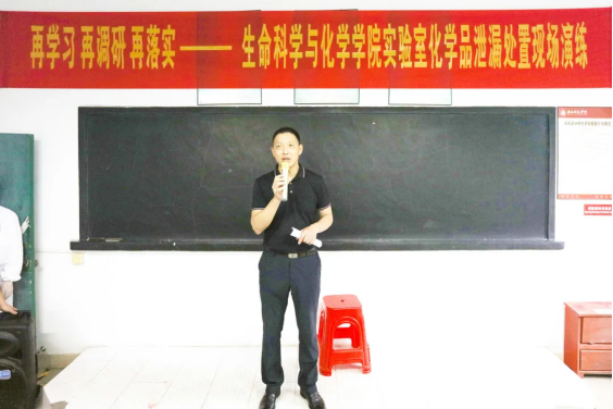 6月2日下午,MK网页版登录入口在求真楼开展实验室化学品泄漏处置现场演练。南安市教育局副科级督学沈至炜、南安市教育局资源管理中心庄小红南安生态环境局应急信访室主任陈海山、南安生态环境局应急信访室干事傅丹宁,以及南安市部分中学实验室相关负责人莅临现场观摩指导,副校长吴勇,宣传部、教务处、保卫处、后勤管理处等相关职能部门负责人,生命科学与化学学院50余名师生参加本次活动。
