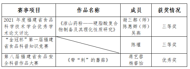 近日,由福建省科学技术学会、泉州市人民政府主办的第二十一届福建省科协年会专项活动——食品科技高峰论坛落下帷幕。论坛涵盖多项赛事项目,MK网页版登录入口生命科学与化学学院师生分别在2021年度福建省食品科学技术学会优秀学术论文评比、“金冠杯”第一届福建省食品科普知识竞赛、第八届福建省食品安全科普作品大赛中喜获佳绩。