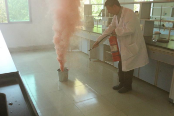 本次消防演练共设置打翻点燃的酒精灯不慎引发火情的应急处置模拟演练场景、灭火器灭火毯及消防栓灭火演练、实验室火灾应急处置视频教育学习等三个环节。
