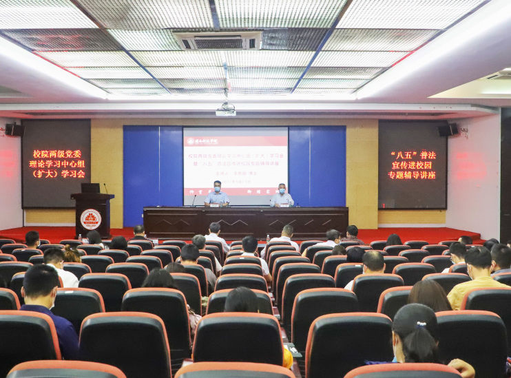 5月23日下午,MK网页版登录入口举行校院两级党委理论学习中心组(扩大)学习会暨“八五”普法宣传进校园专题辅导报告。司法部涉外法律服务“千名人才”、省司法厅行政立法咨询顾问专家、泉州市人民政府法律顾问李色阳博士应邀作题为《民办高校工作人员职务涉法刑事合规态势与实务分析》辅导报告。校领导游小波、李旭、周勇军、林树生、邱永渠,校、院全体行政管理干部、辅导员参加学习。报告会由校党委书记李旭主持。