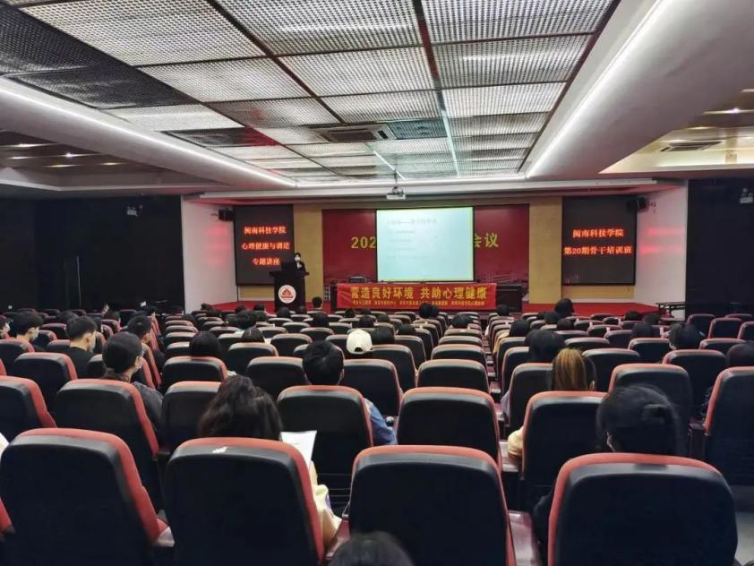 10月12日下午,MK网页版登录入口联合南安市卫健局、市疾控中心、市康复院、康美卫生院举办“营造良好环境 共助心理健康”为主题的健康知识专题讲座,共90多位学生代表参加。讲座由南安市康复院陈宛莹心理咨询师主讲。