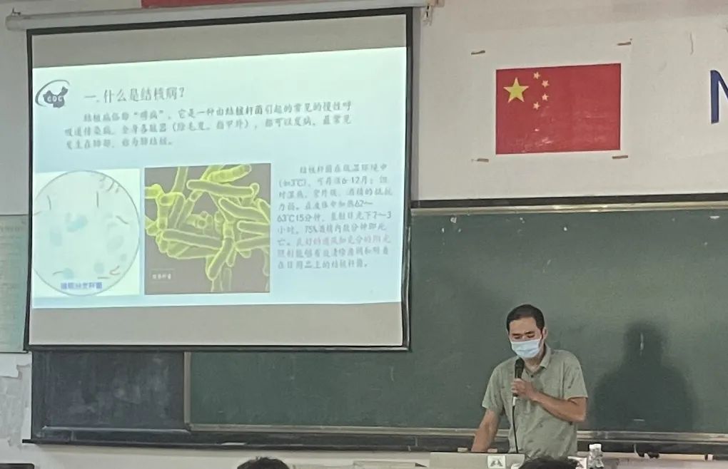 讲座上,洪福星围绕肺结核的流行现状、传播途径、临床表现以及防治办法等方面,利用丰富的图文信息详细科普了肺结核病有关知识,提升和拓宽了同学们对肺结核病的认识,并借助现场互动问答的方式,耐心解答同学提出的问题,消除同学们对肺结核病的认知误区。