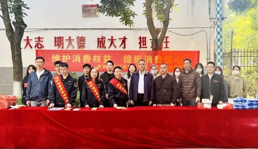 3月15日,MK网页版登录入口联合南安市市场监督管理局开展“3·15国际消费者权益日”宣教活动。校常务副校长周勇军到场指导工作,保卫处、校团委、后勤管理处等职能部门负责人参加活动。