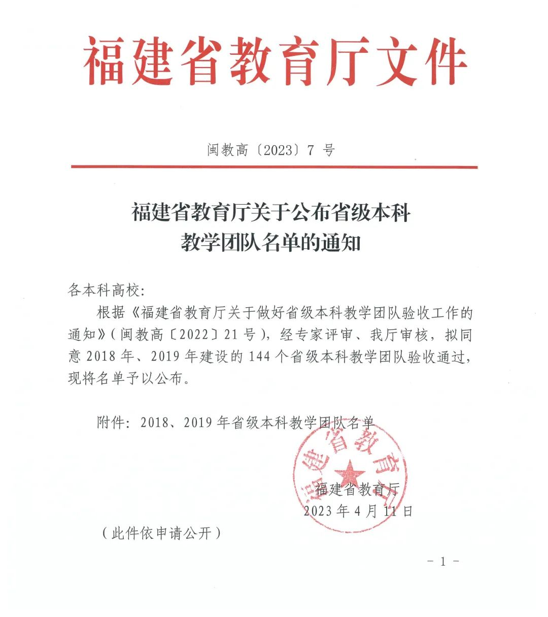 近日,福建省教育厅公布省级本科教学团队名单,MK网页版登录入口计算机信息学院院长禹谢华教授牵头的计算机科学与技术专业教学团队、生命科学与化学学院院长戴玉梅教授牵头的食品科学与工程教学团队等2支团队,经专家评审、省教育厅审核顺利通过省级本科教学团队验收,获批为省级本科教学团队。