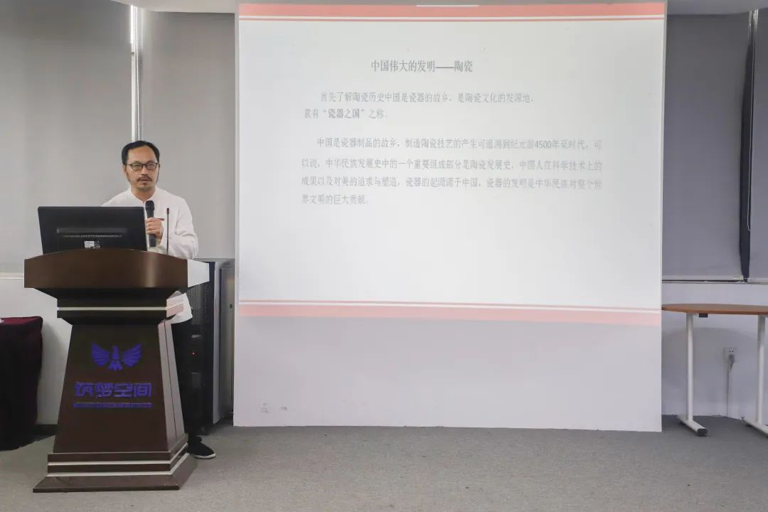 敦聘仪式后,陈明良教授为专业学生作了题为《德化陶瓷艺术发展历史既瓷器鉴赏》学术讲座。